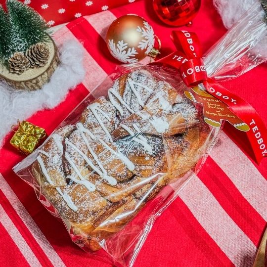 A soft and buttery cinnamon raisin loaf that fills every bite with warmth and comfort. Infused with the fragrant sweetness of cinnamon and studded generously with juicy raisins, this loaf delivers a nostalgic, Christmassy flavour that feels like a cozy hug. Perfect enjoyed on its own, lightly toasted with butter, or savoured alongside a soothing cup of tea a simple festive pleasure that brings joy to any moment.